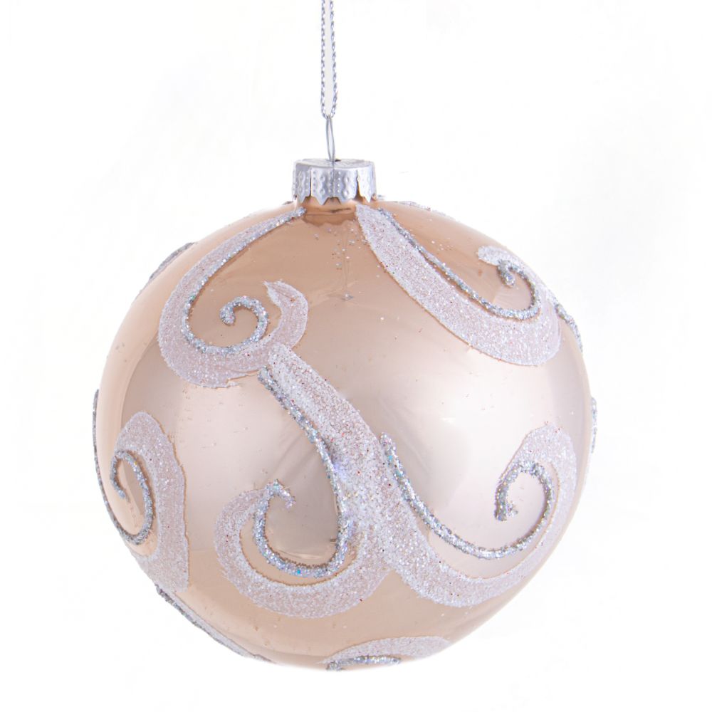 Set 4 Palle di Natale da Appendere Ø 10 cm in Vetro Champagne Argento