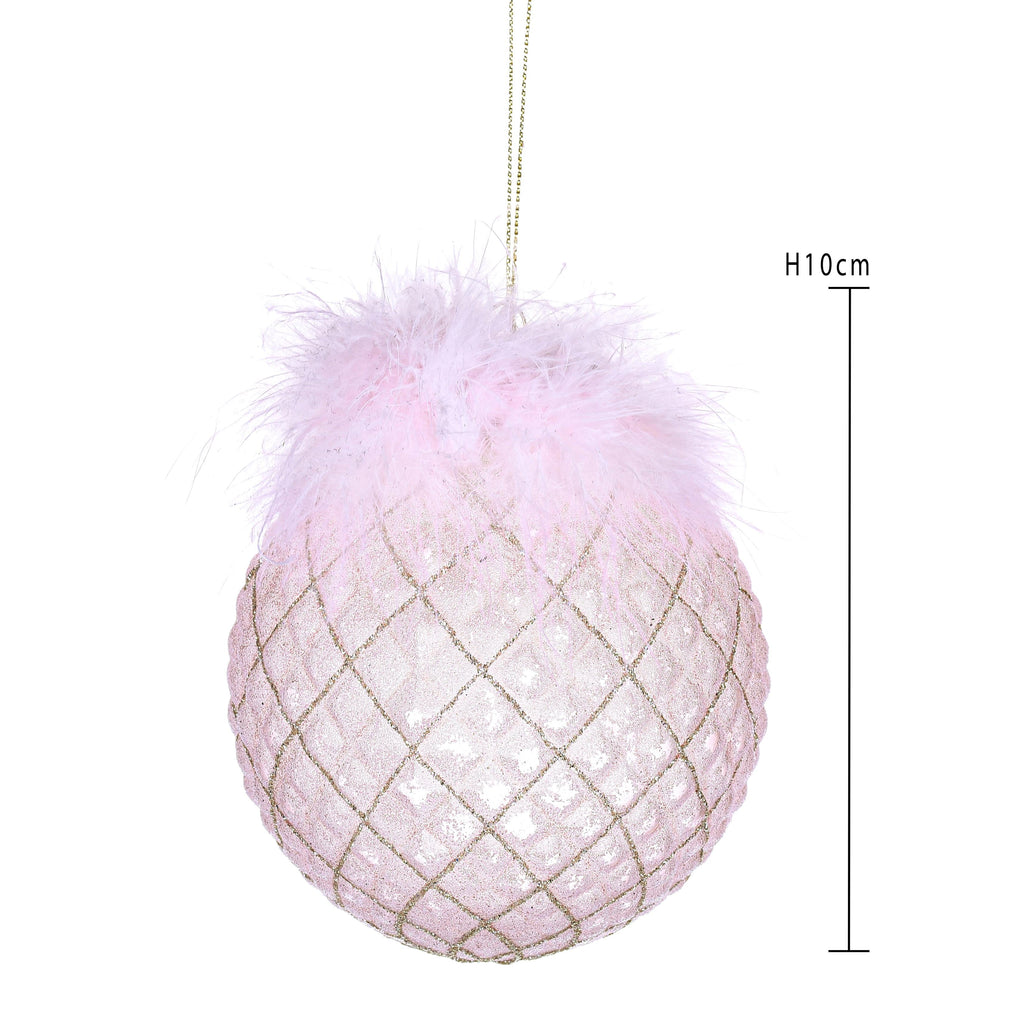 Set 4 Palline Decorative per Albero di Natale con Piume Ø10 cm Rosa/Champagne