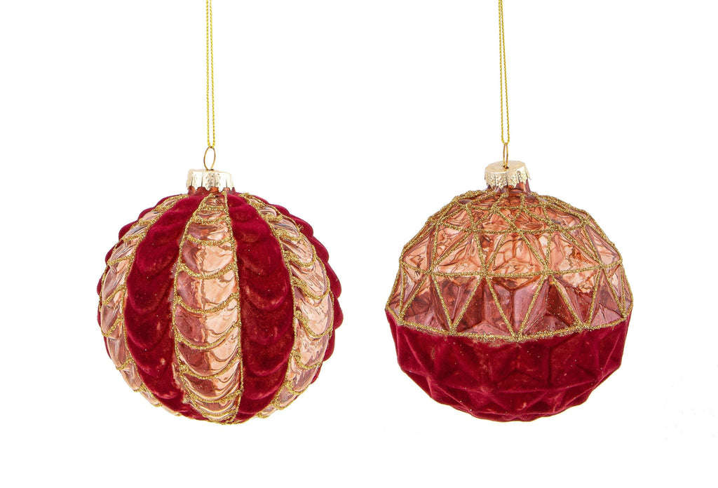 Set 4 Palline Decorative per Albero di Natale Velvet Ø10 cm Burg/Oro