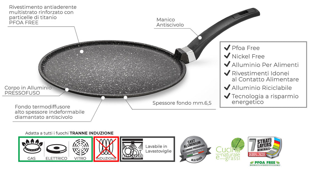 IRON COOK. Il pentolame commercialmente chiamato PIETRA, non è per Noi una moda passeggera ma vera qualità! Collezione di padelle, tegami, casseruole, bistecchiere prodotta in alluminio pressofuso*, tecnologia che permette di ottenere spessori differenziati, maggior nel fondo per distribuire e mantenere uniformemente il calore, anche dopo aver tolto la pentola dalla fiamma il che significa cotture omogenee e notevole risparmio di energia.