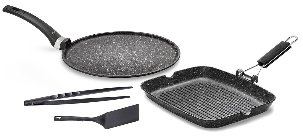 Set 4 Pezzi Bistecchiera + Piastra Multiuso in Alluminio Pressofuso Antiaderente Olympia Hard Cook