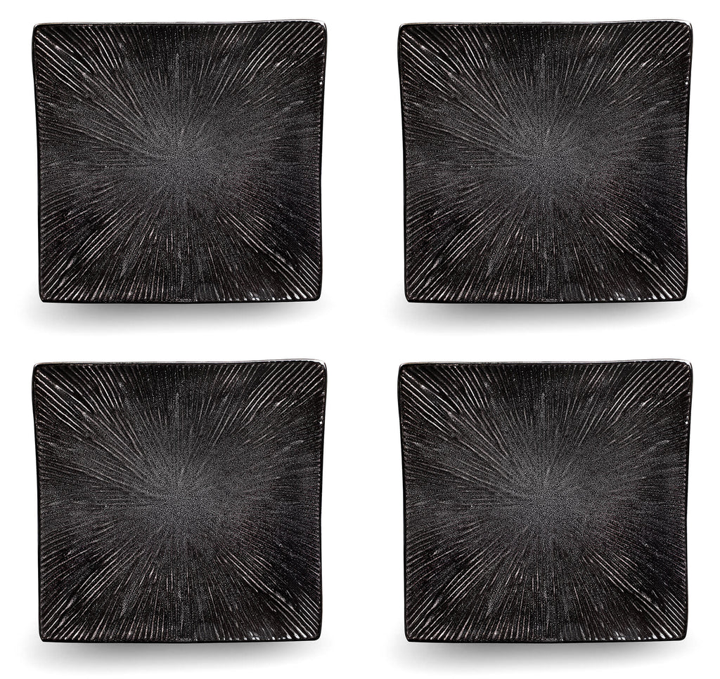 Set 4 Piatti Piani Quadrati 27x27x4 cm in Gres Kaleidos Sirius Neri