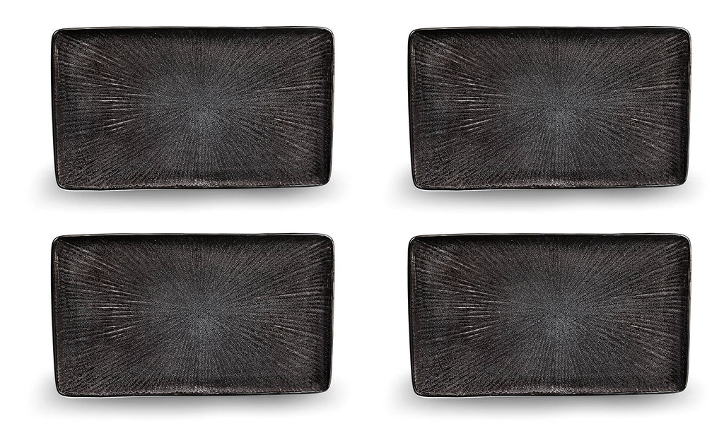 Set 4 Piatti Rettangolari 30x18x2,5 cm in Gres Kaleidos Sirius Neri