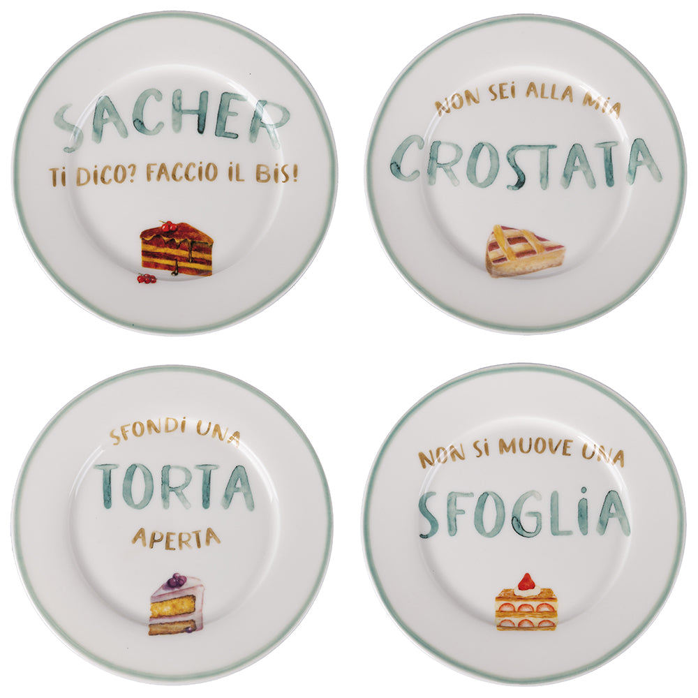 Set 4 Piattini Dolce Ø19x1,5 cm in New Bone China VdE Tivoli 1996 Le Travisate Bianco