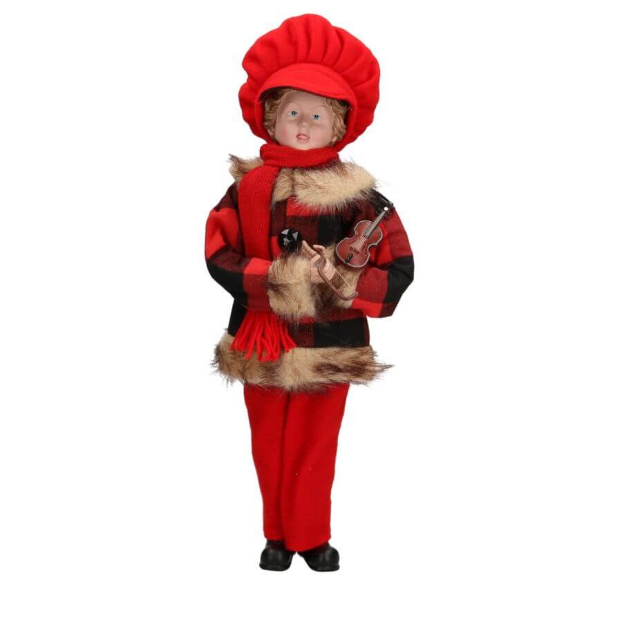 Set 4 Pupazzi Famiglia Natalizia 40x72x24 cm in Tessuto Rossi