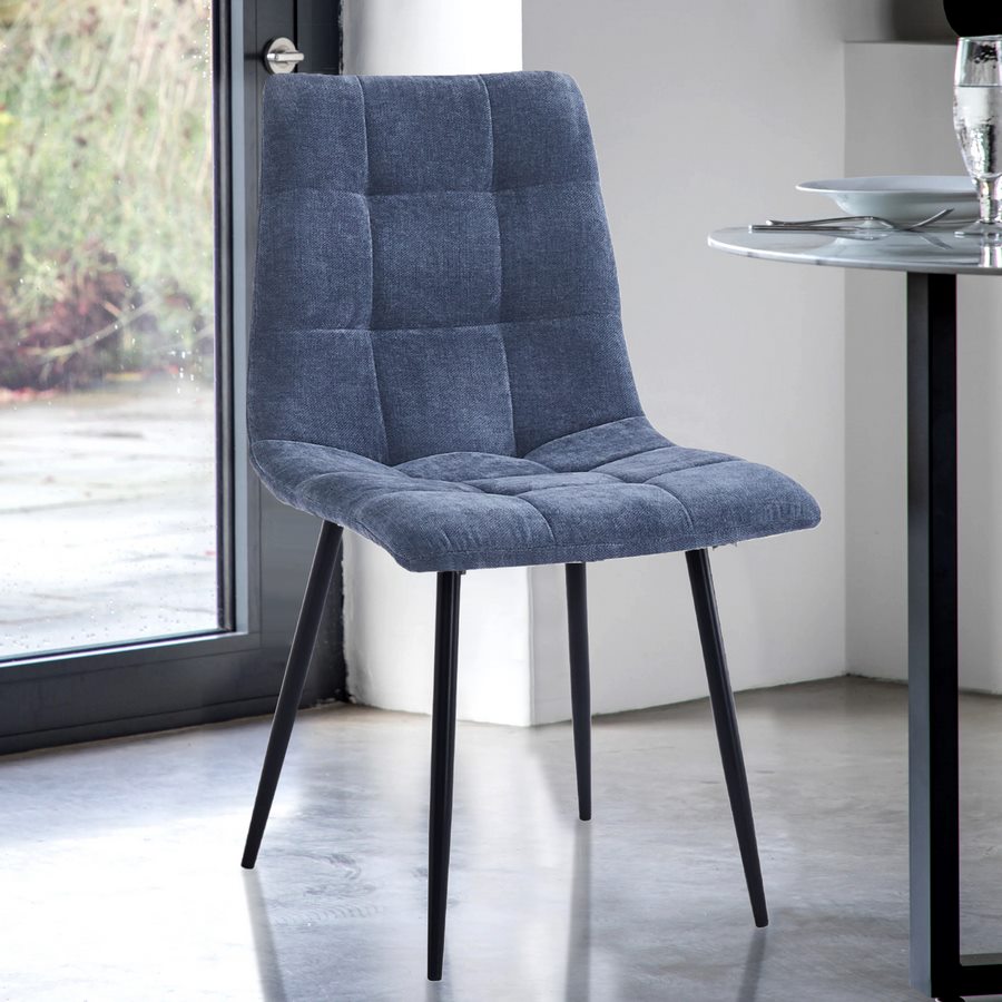 Set da 4 sedie in tessuto trapuntato colore blu Lo stile moderno e lo schienale avvolgente, abbinato ai moderni piedini neri, rendono la sedia Chris una sedia ergonomica e versatile. Grazie allo schienale e alla seduta in tessuto, imbottito e trapuntato, sono la scelta giusta come sedie da cucina o sedie da salotto. Il tessuto blu dona anche un tocco di eleganza e di colore al tuo ambiente. Sono vendute esclusivamente in set da 4 per arredare risparmiando!