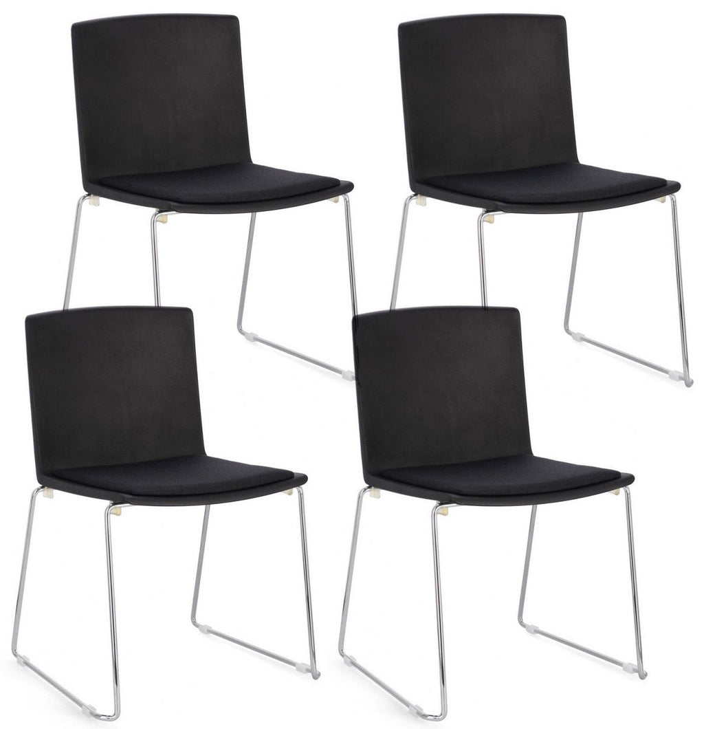 Sedia con seduta in plastica PP, cuscino in poliestere e gambe in acciaio cromato. Facilmente impilabile.Set 4 Sedie 43,5x50x79 cm Giulia in Poliestere Cromo e Nero