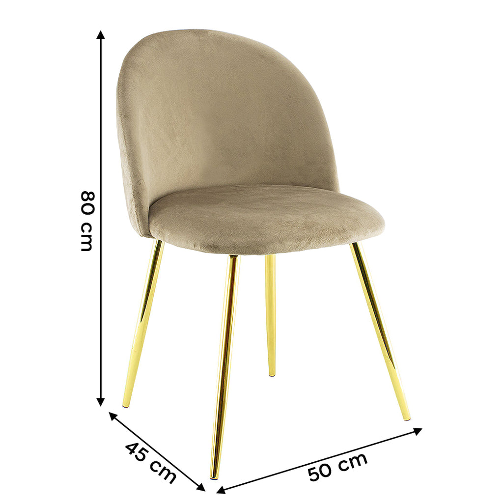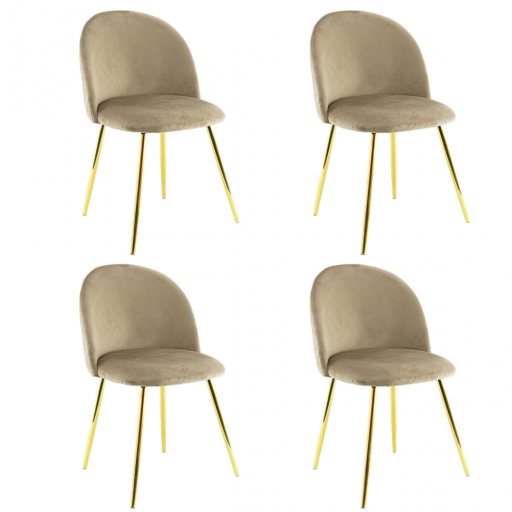 Set 4 Sedie 50x45x80 cm in Tessuto Vellutato Piedi Oro Tortora