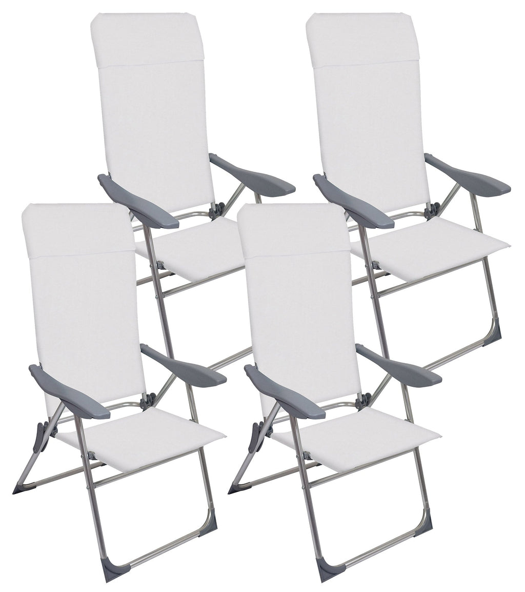 Set 4 Sedie a Sdraio Reclinabili Pieghevoli 59x64x108 cm in Alluminio e Textilene Avorio