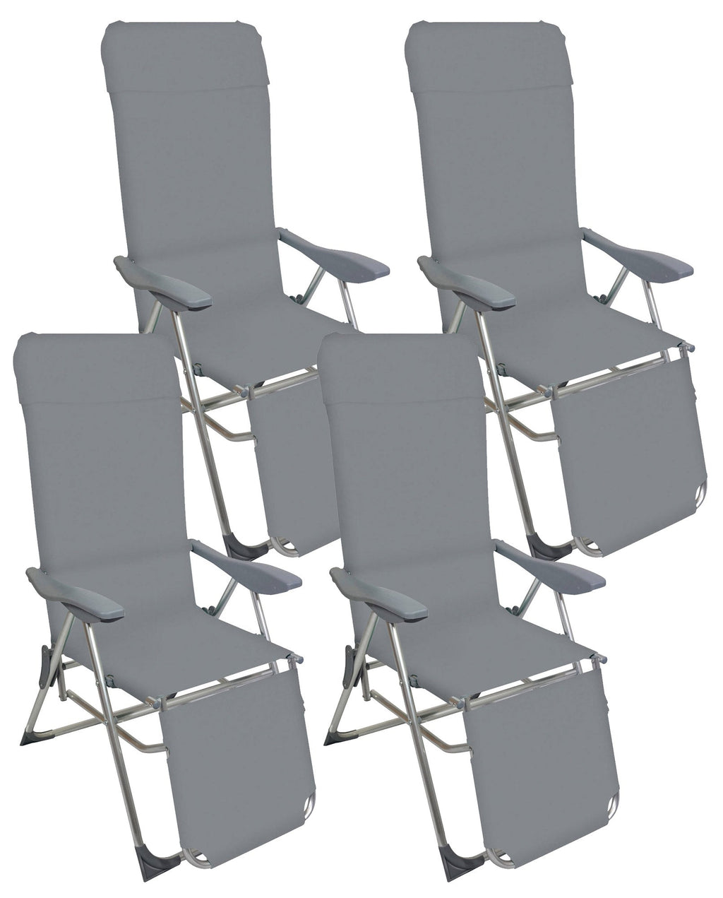 Set 4 Sedie a Sdraio Reclinabili Pieghevoli 59x76x109 cm con Poggiapiedi in Alluminio e Textilene Grigio