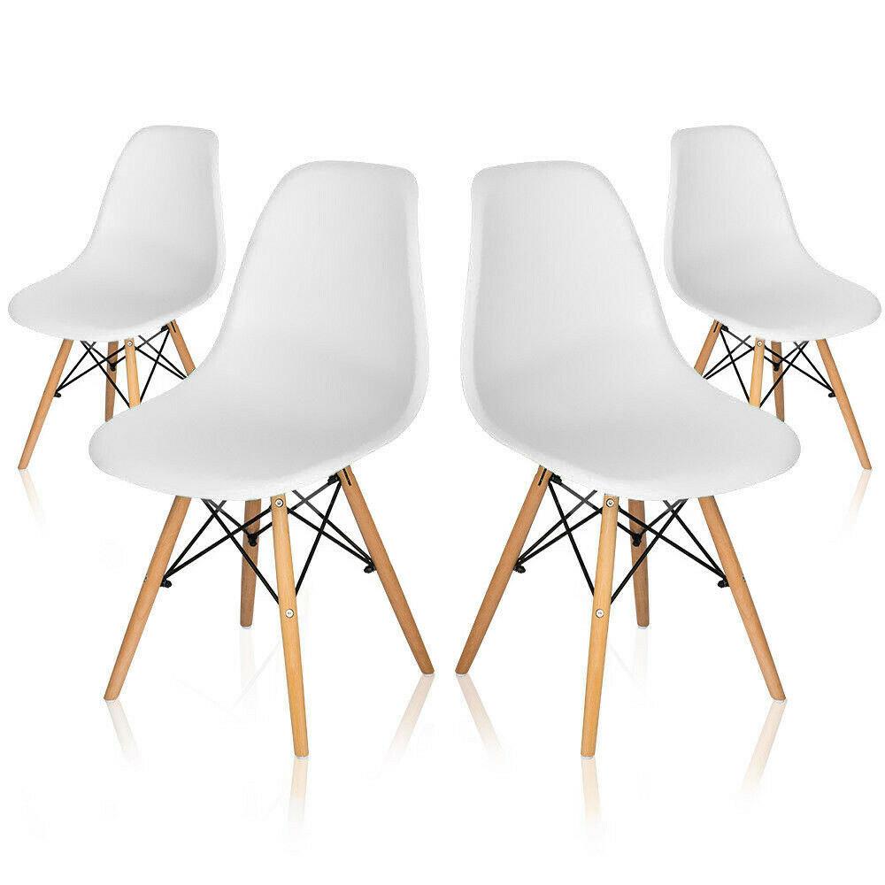 Set 4 Sedie con Stuttura in Legno e Seduta in Resina Luka Bianche