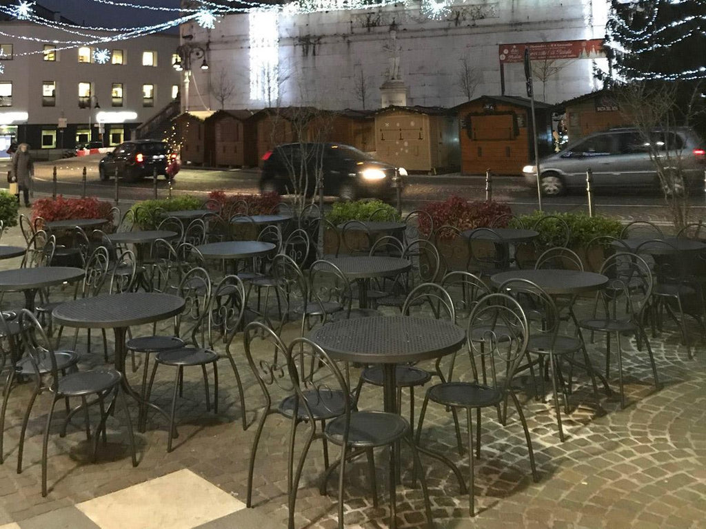Set di 4 sedie impilabili con struttura in acciaio pre-zincato e verniciatura poliestere color antracite.