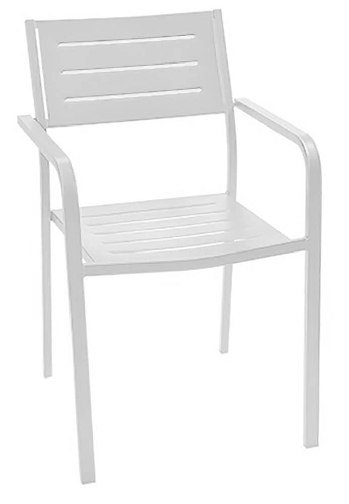 Set di 4 sedie con braccioli impilabili con struttura in acciaio pre-zincato e verniciatura poliestere color Bianche.