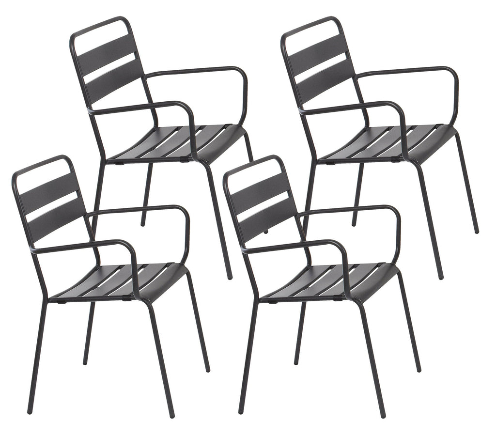 Set 4 Sedie da Giardino 57x50x86 cm in Acciaio Verniciato Grigio