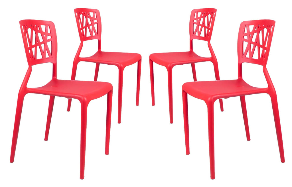 Set 4 Sedie da Giardino in Polipropilene Vandi Rosse