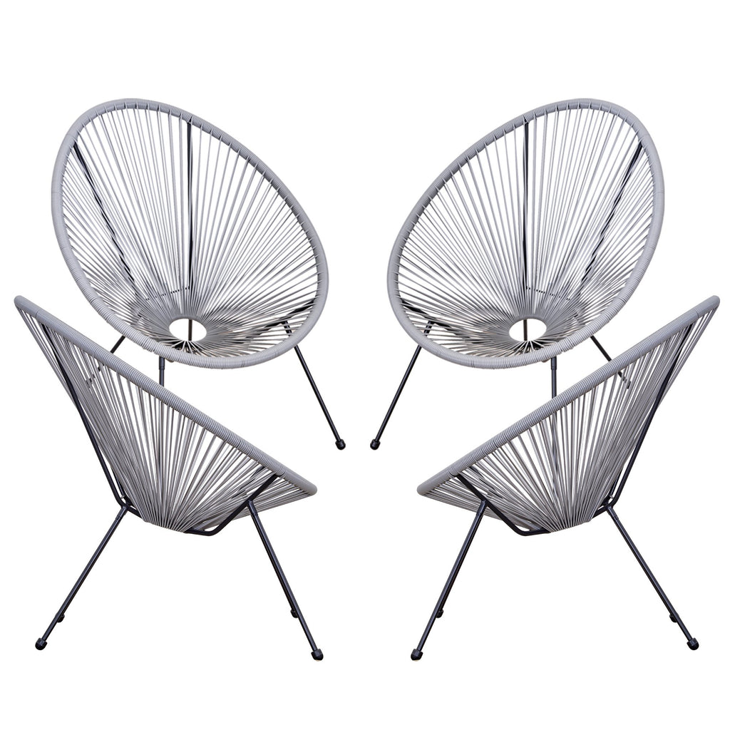 Set 4 Sedie da Giardino Ovali 73x77x87 cm in Rattan PE Grigio Chiaro