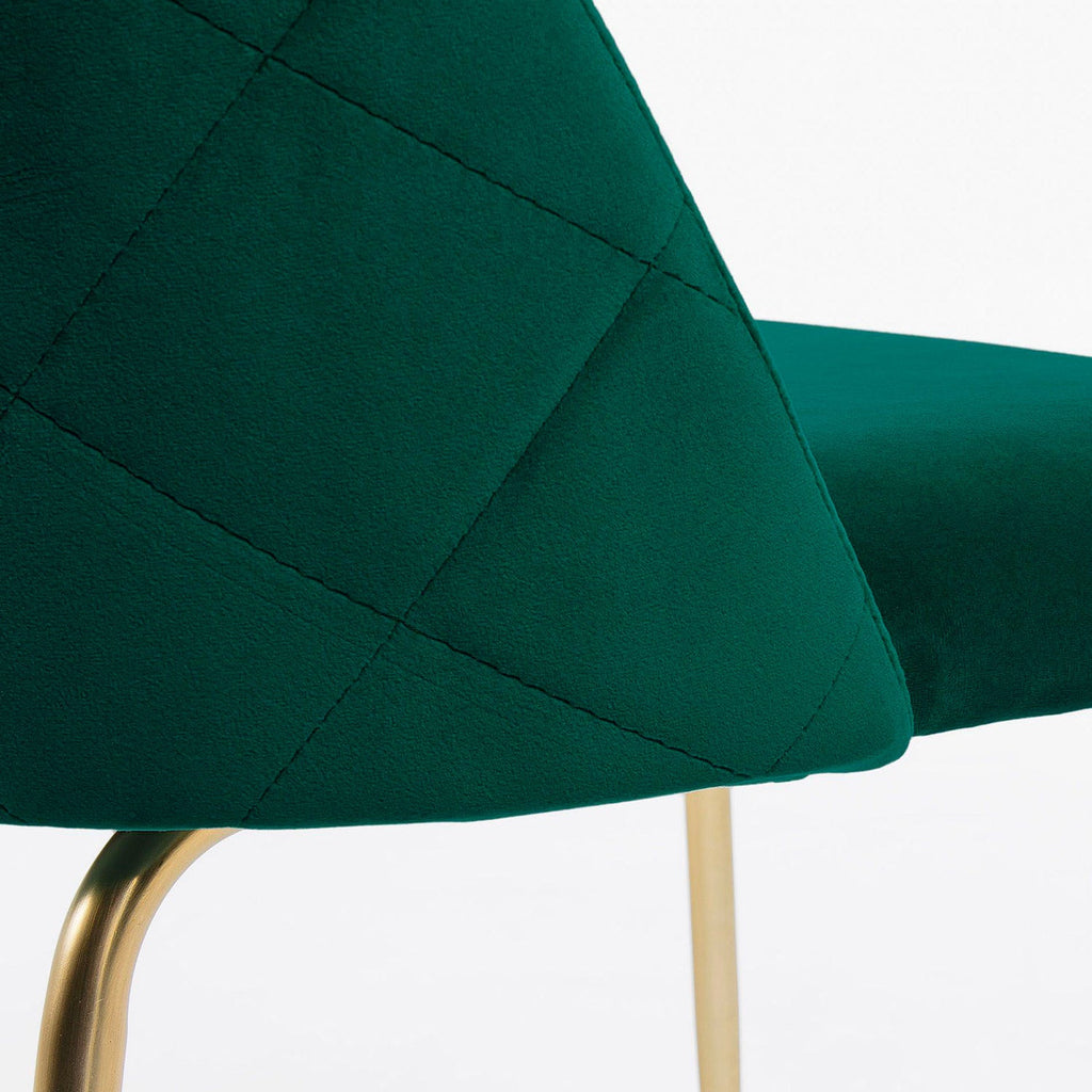 Presenta delle guarnizioni sotto i piedi per una buona stabilità e resistenza al rumore, oltretutto non danneggiano il pavimento, anzi proteggono e impediscono che la sedia possa scivolare. La seduta è imbottita in spugna, realizzata con velluto. Lo schienale si presenta comodo e confortevole per aumentare il comfort in totale relax. Un tocco di originalità è dato dalle impunture effetto trapunta sullo schienale.
