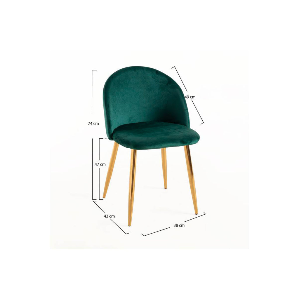 Set 4 Sedie Imbottite 38x43x74 cm in Vellluto Velvet Ottanio e Oro