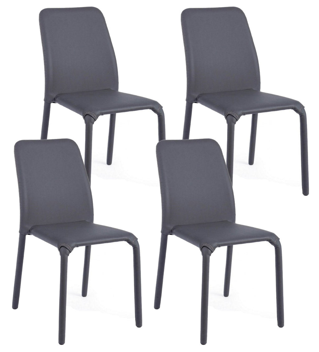 Set 4 Sedie Imbottite 42x61x85,5 cm Pathos in Ecopelle Grigio