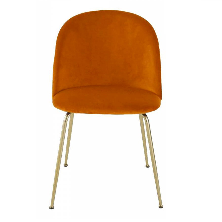 Set 4 Sedie Imbottite 49x52x79 cm in Velluto Arancio e Oro