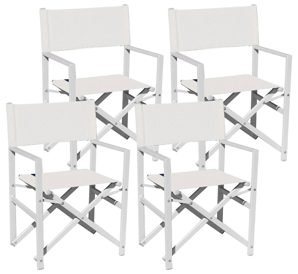 Set 4 Sedie Regista da Giardino 55x52x86 cm in Alluminio Ecrù