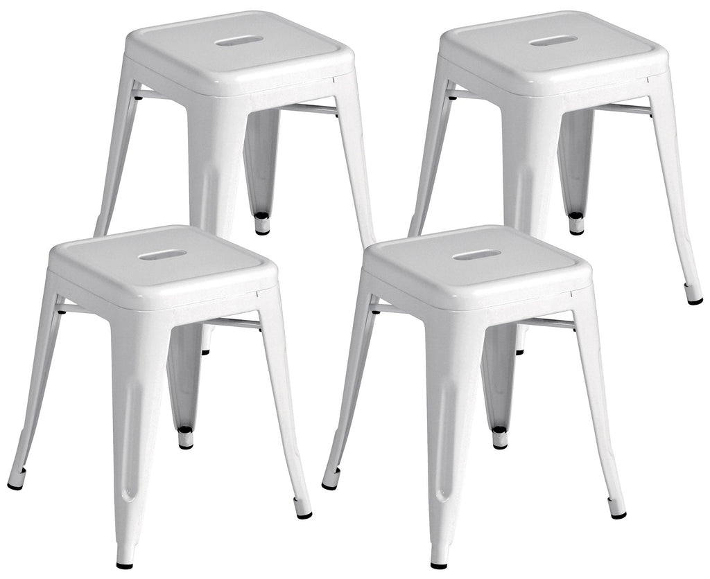Set 4 Sgabelli Bassi Impilabili 39x39x46 cm in Lamiera Galvanizzata Avorio
