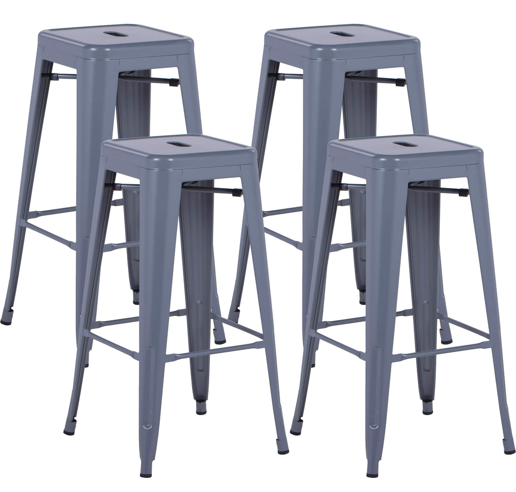 Set 4 Sgabelli da Bar Alto in Metallo Victoria Grigio Antracite