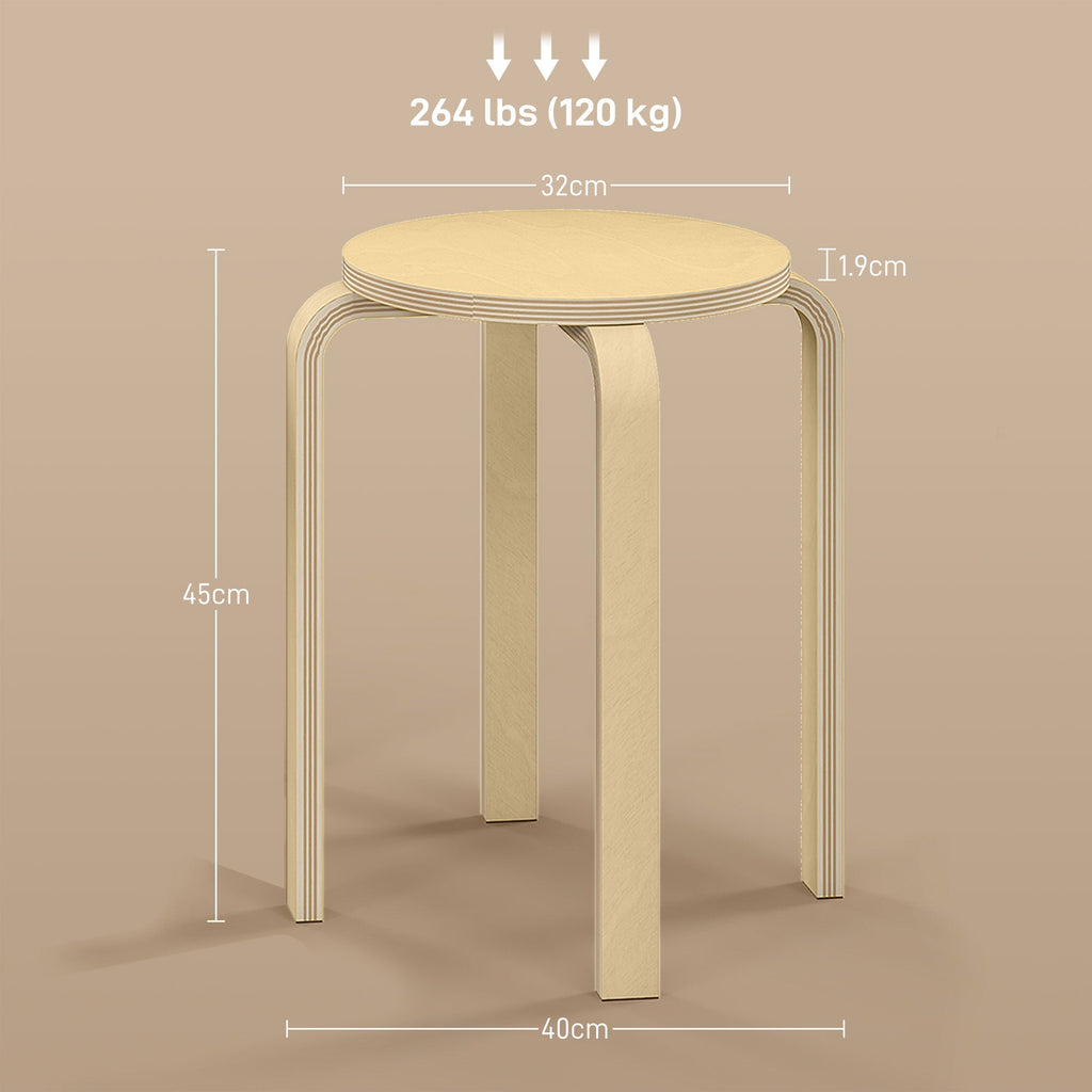 Set 4 Sgabelli Impilabili Rotondi in Legno 40x54 cm Colore Legno