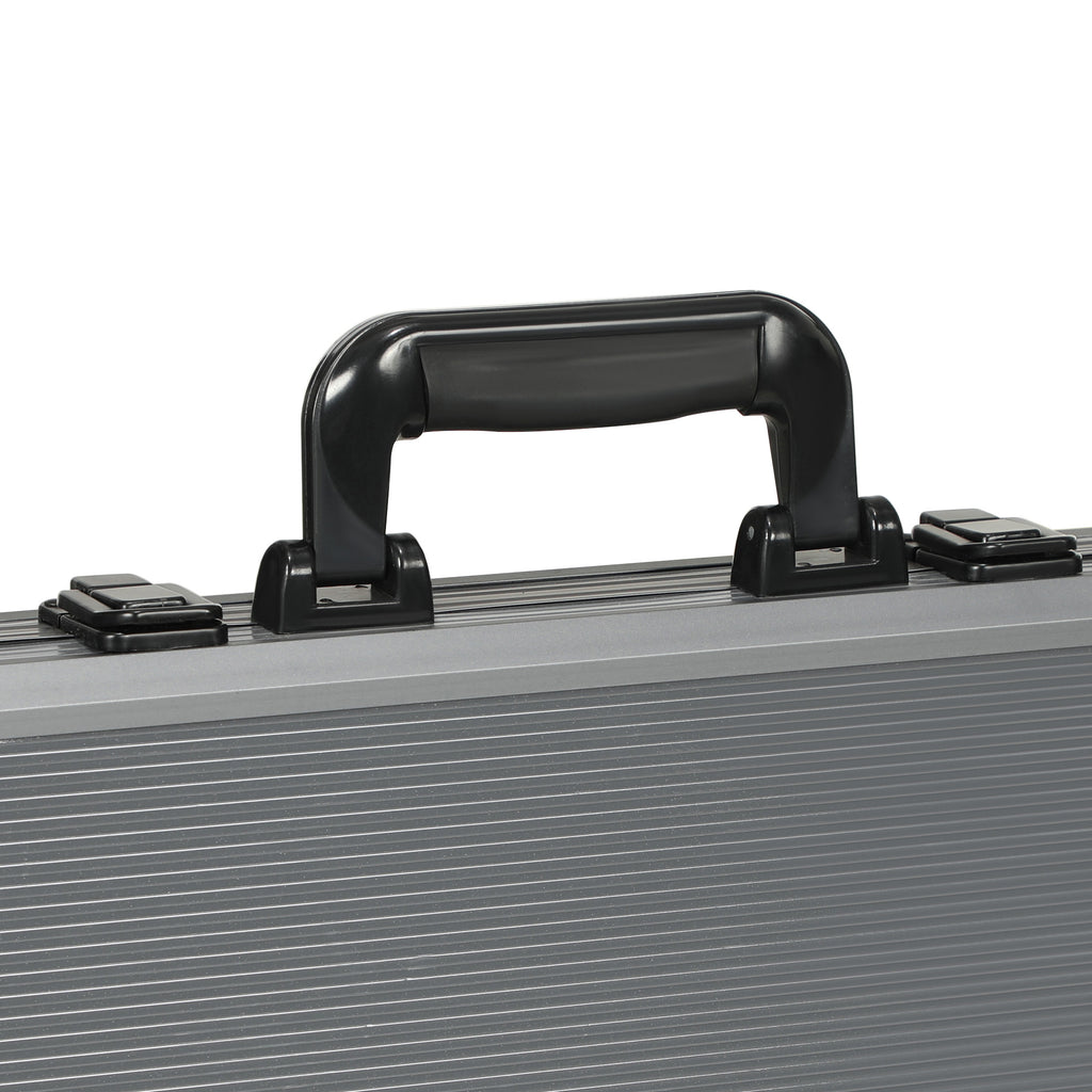 • CUSTODIA PROTETTIVA: Valigetta da poker costruita con ABS leggero e angoli in alluminio rinforzato. All'interno sono presenti dei ripiani rivestiti in velluto e schiuma per proteggere le fiches, mentre due lucchetti e una maniglia completano il set