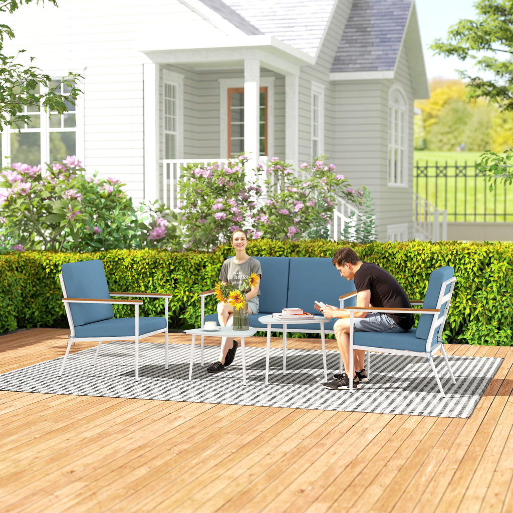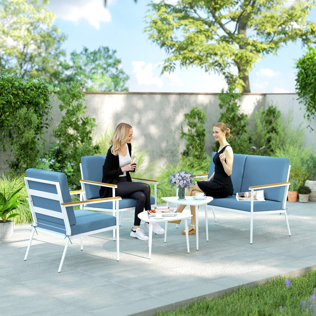 Set 5 Pezzi da Esterno Divano 2 Poltrone e 2 Tavolini in Vetro Azzurro