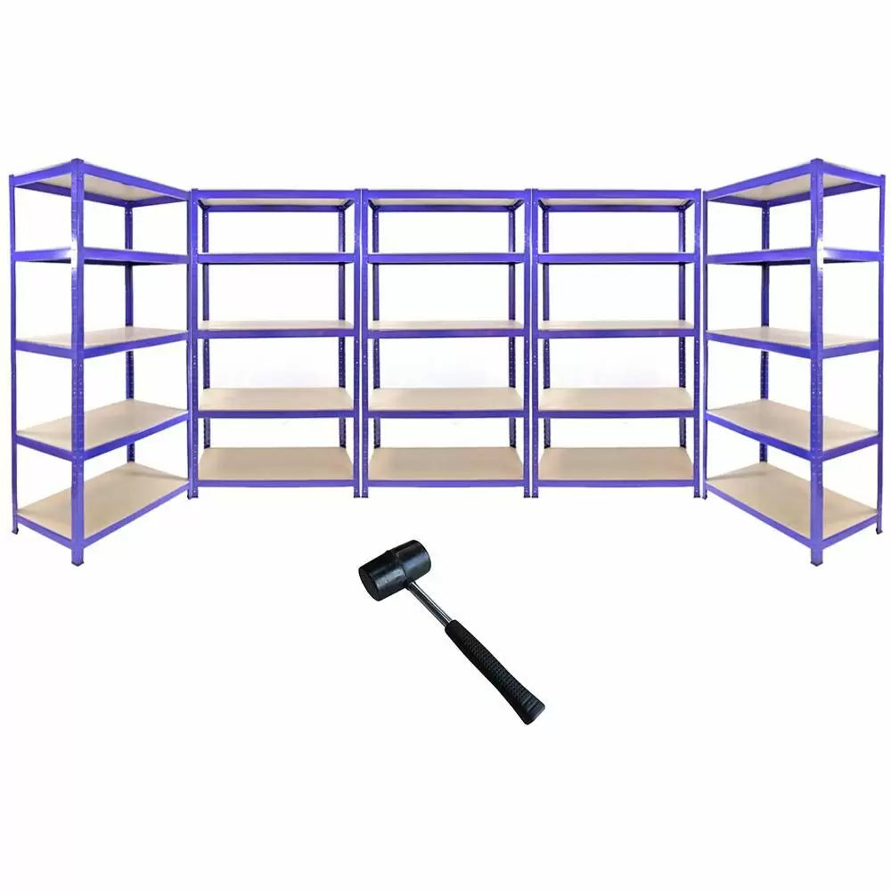 Set 5 Scaffali 5 Ripiani ad Incastro 90x45x180 Piani in MDF Struttura in Acciaio Blu