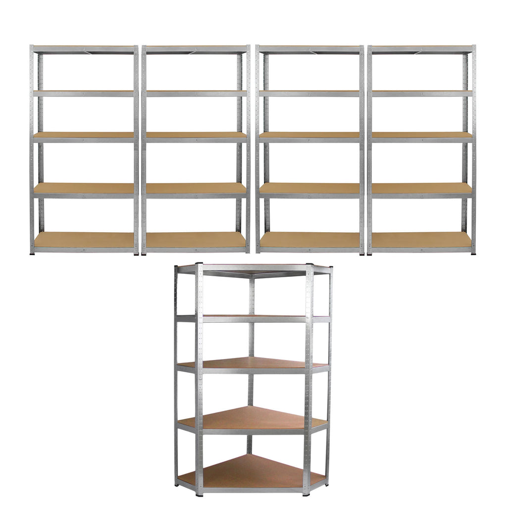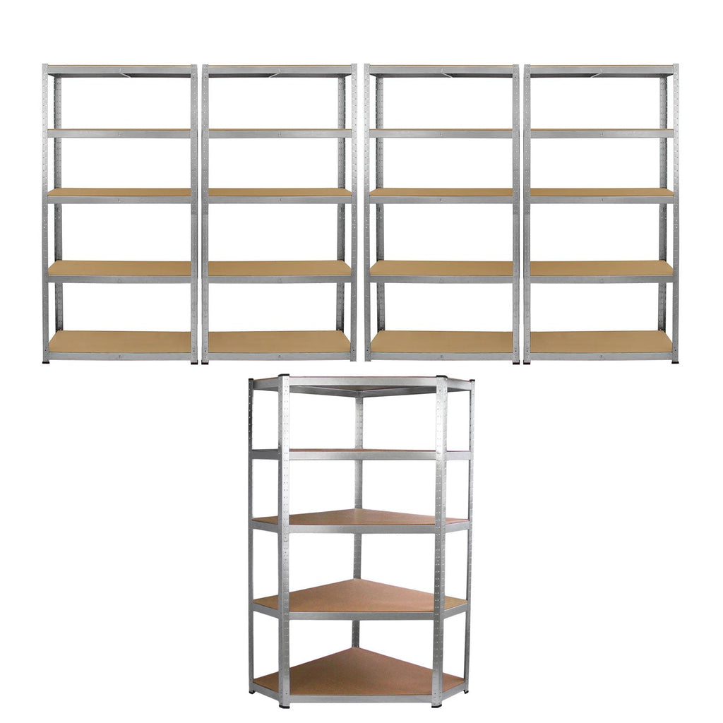 Set 5 Scaffali Senza Bulloni 90 cm 4 Lineari 1 Angolare in Acciaio