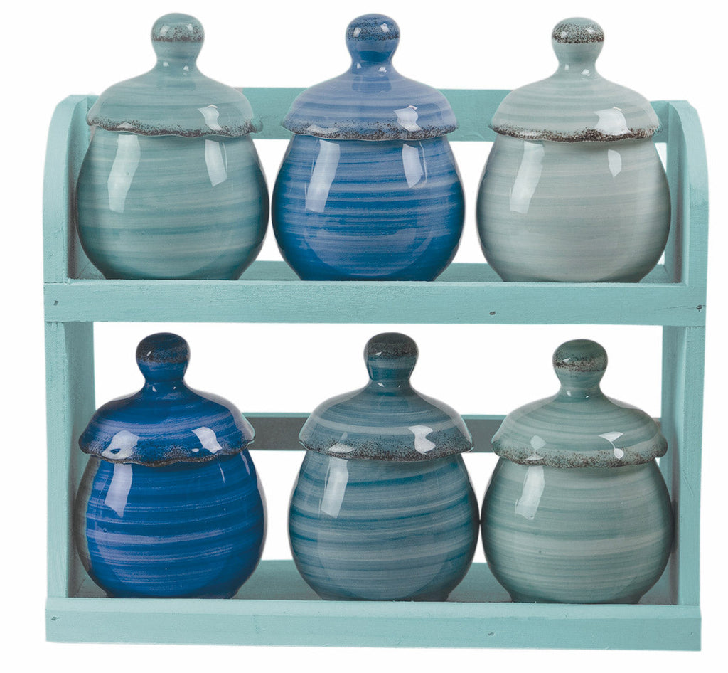 Set 6 Barattolini in Ceramica con Stand in Legno Villa d'Este Home Tivoli 1996 Baita