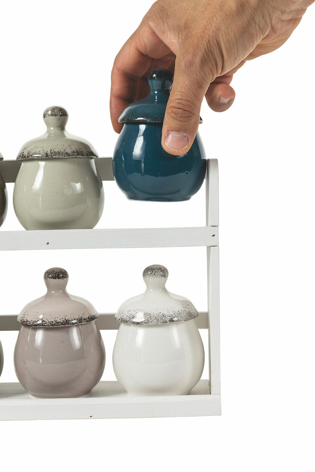Set 6 Barattolini in Dolomite con Stand in Legno Villa d'Este Home Tivoli 1996 Baita