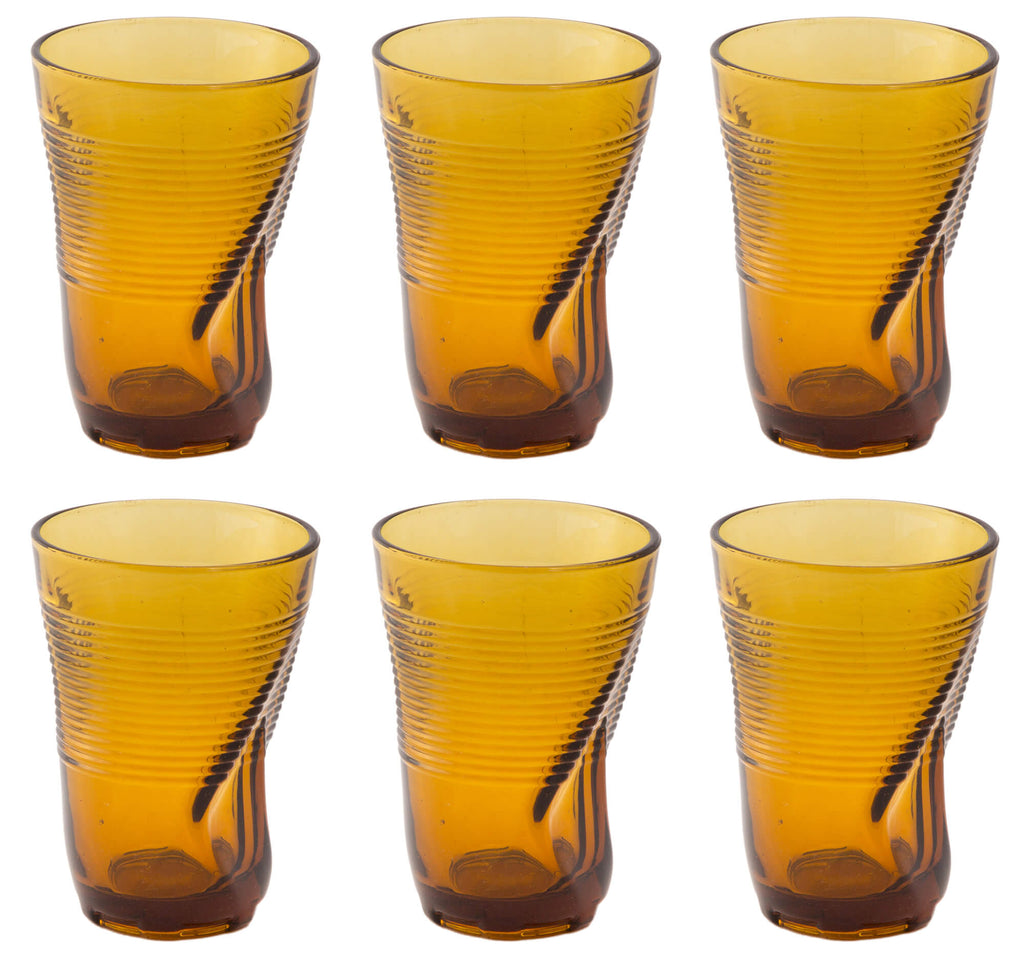 Set 6 Bicchieri Accartocciati 34 cl Ø8 cm in Vetro Pressato Kaleidos Ambra