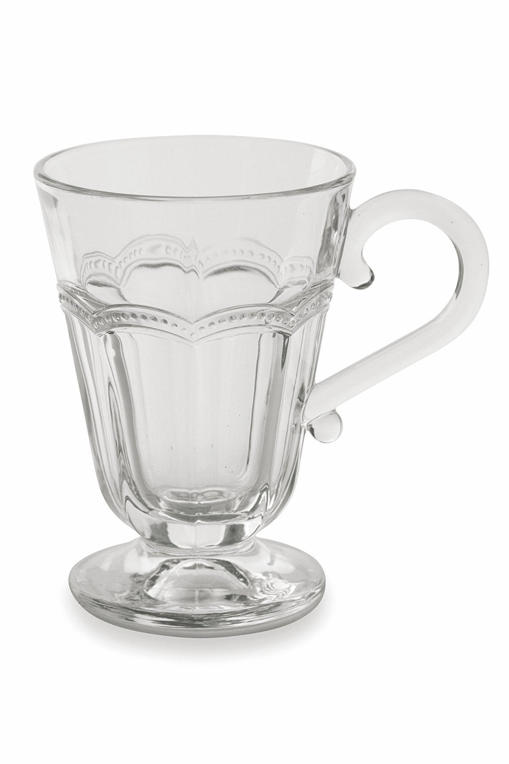 La linea Duchessa sorprende, ancora una volta, con dei bicchieri originali e unici. Si arricchiscono di un'impugnatura laterale capace di trasformarli in sontuose tazze ideali per servire infusi e tisane. L'eleganza tradizionale dei piatti rivive attraverso il vetro e i suoi raffinati decori.