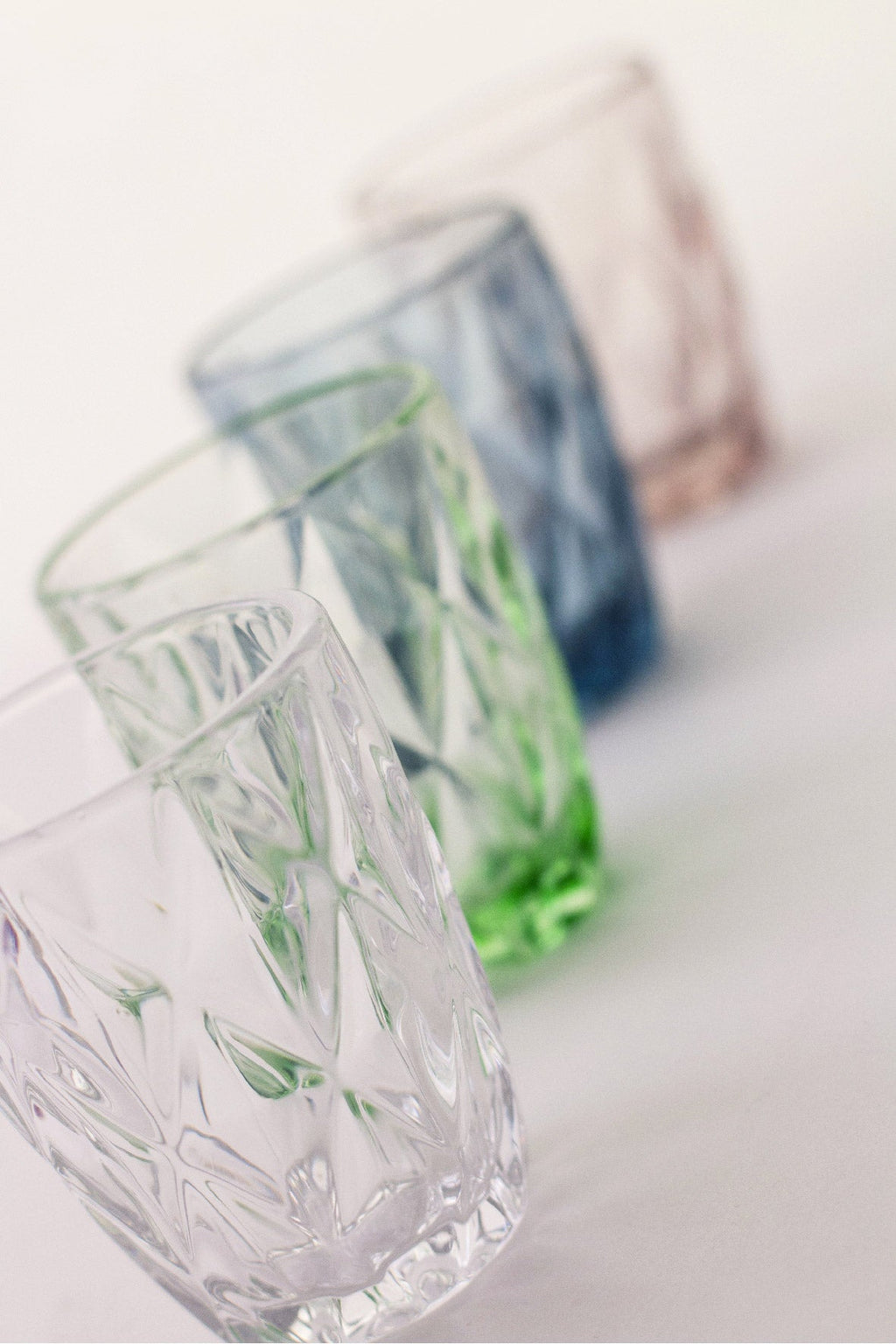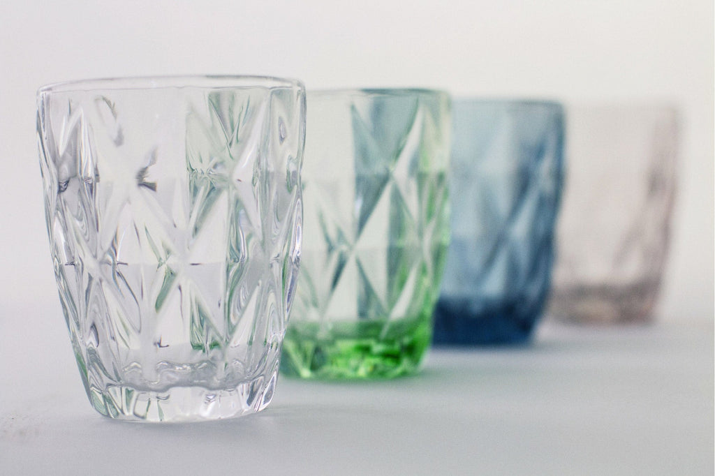 Create un'atmosfera chic e ricercata a tavola. Colorate con stile la vostra apparecchiata, scegliendo la linea di bicchieri Quarzo. Superficie intagliata e trasparenze creano un gioco di luci delicato che alleggerisce una tavola barocca e si adatta al gioco di colori di una tavola contemporanea.