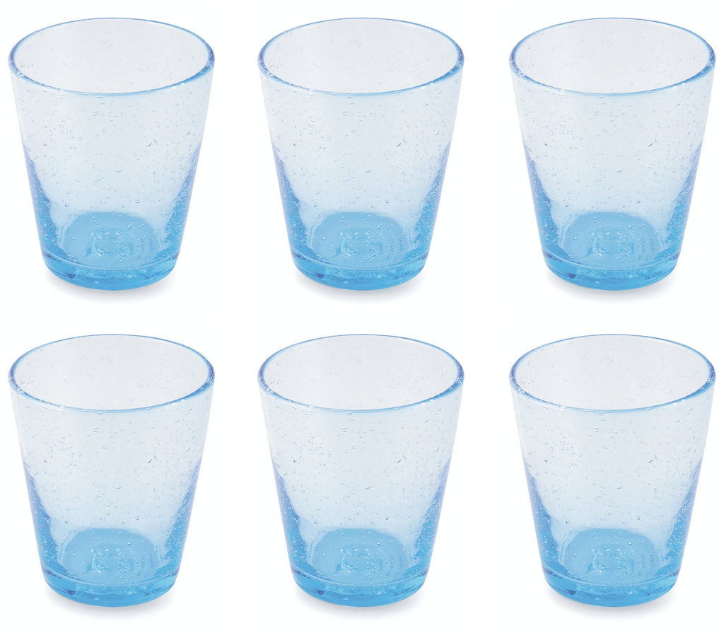 Set 6 Bicchieri Ø9x10 cm in Vetro Soffiato VdE Tivoli 1996 1996 Cancun Azzurri