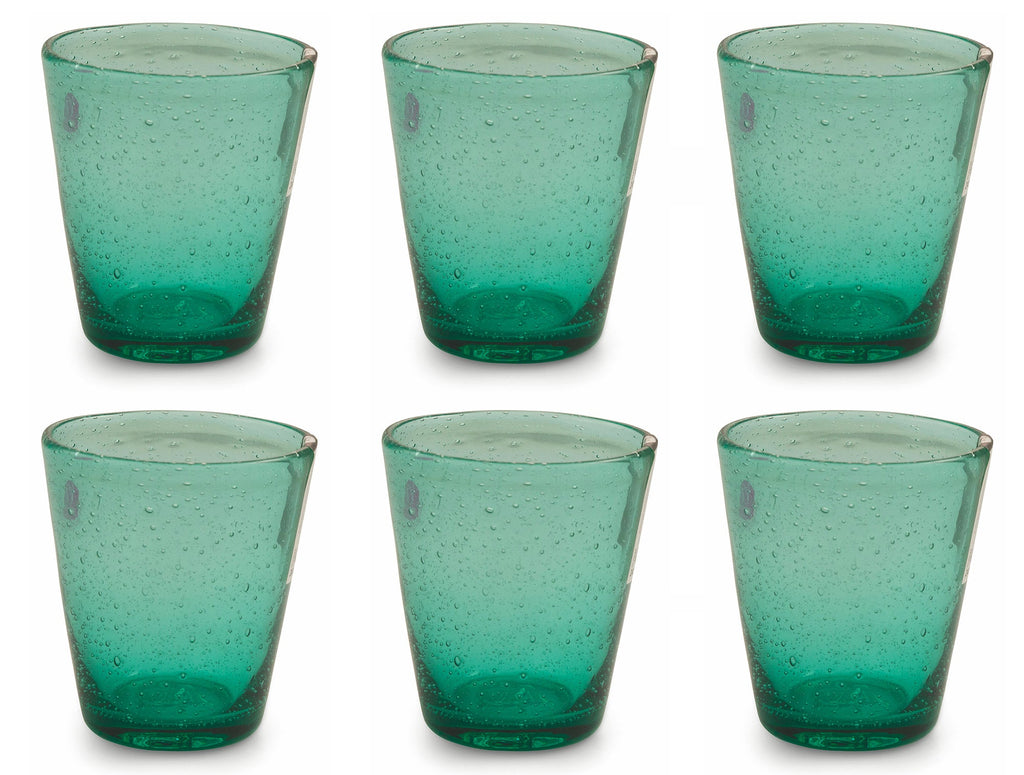 Set 6 Bicchieri Ø9x10 cm in Vetro Soffiato VdE Tivoli 1996 1996 Cancun Verde Tiffany