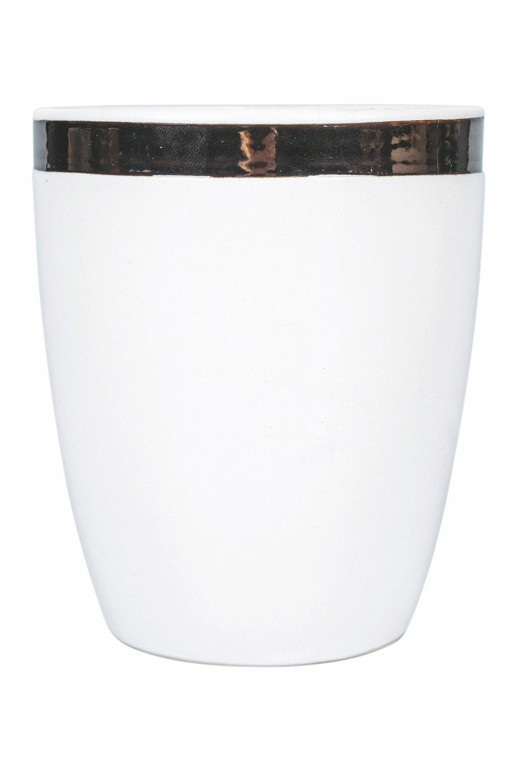 Bicchieri Naima: incontro materico I bicchieri Naima realizzano la perfetta combinazione materica tra due differenti finiture del gres. Un effetto pieno e opaco, che evoca le consistenze dell'argilla cruda, si chiude in un bordo Rame, creando un accostamento elegante e suggestivo.