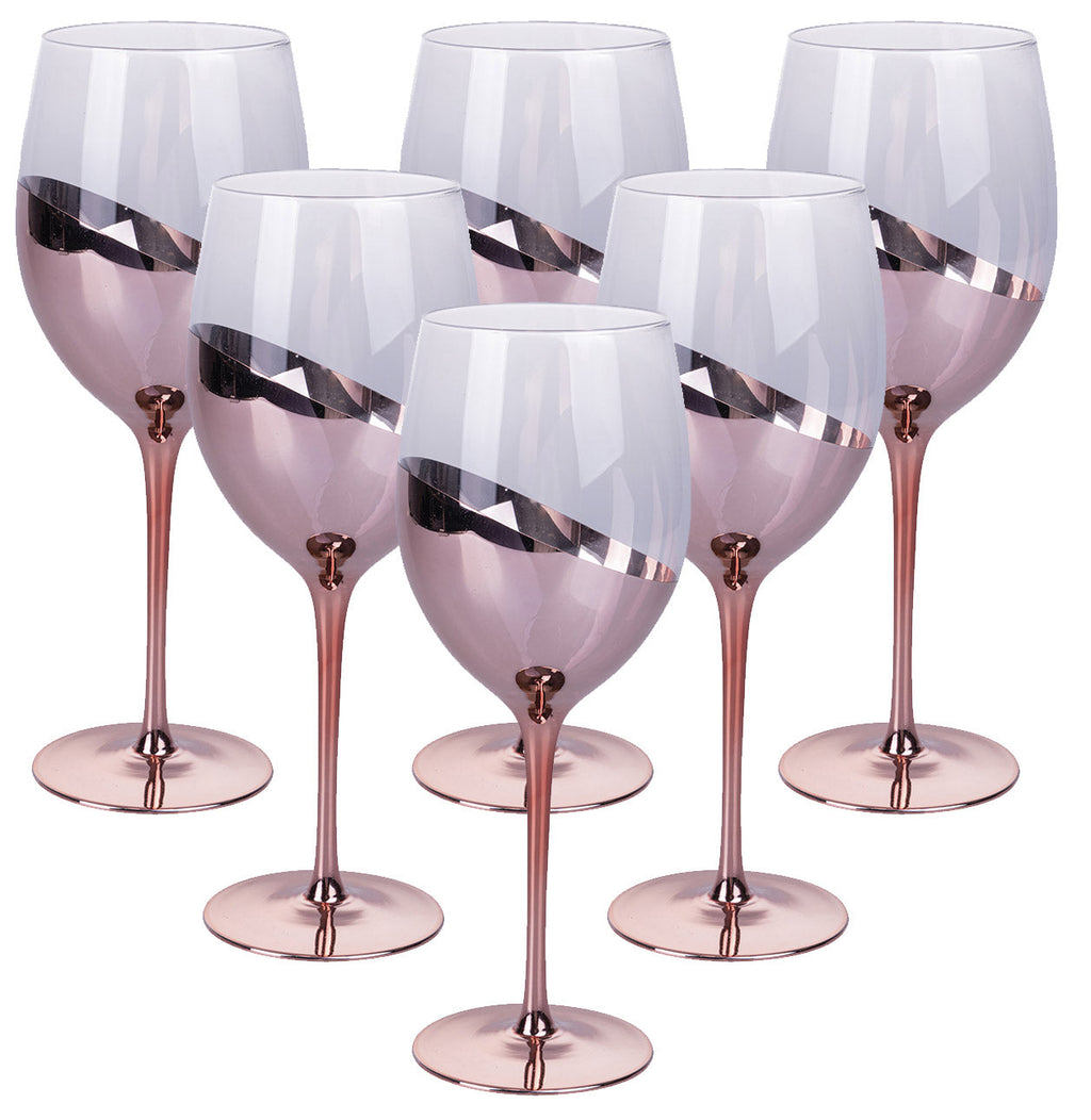 Set 6 Calici Chic in Vetro VdE Tivoli 1996 Trasparente e Rose Gold
