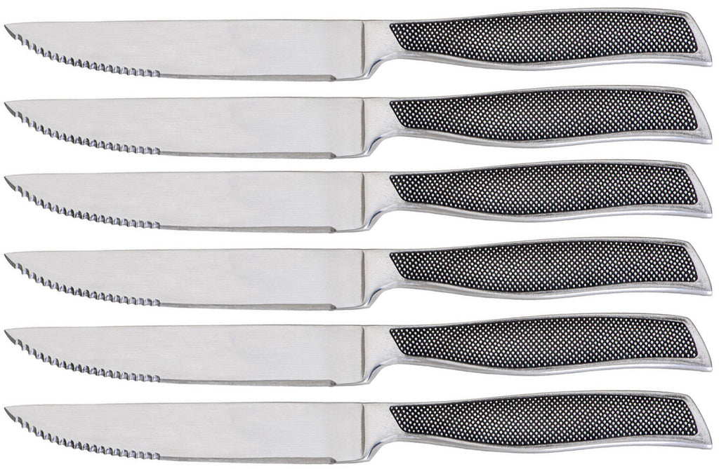 Set 6 Coltelli da Tavola Lama Seghettata in Acciaio Inox Rambo