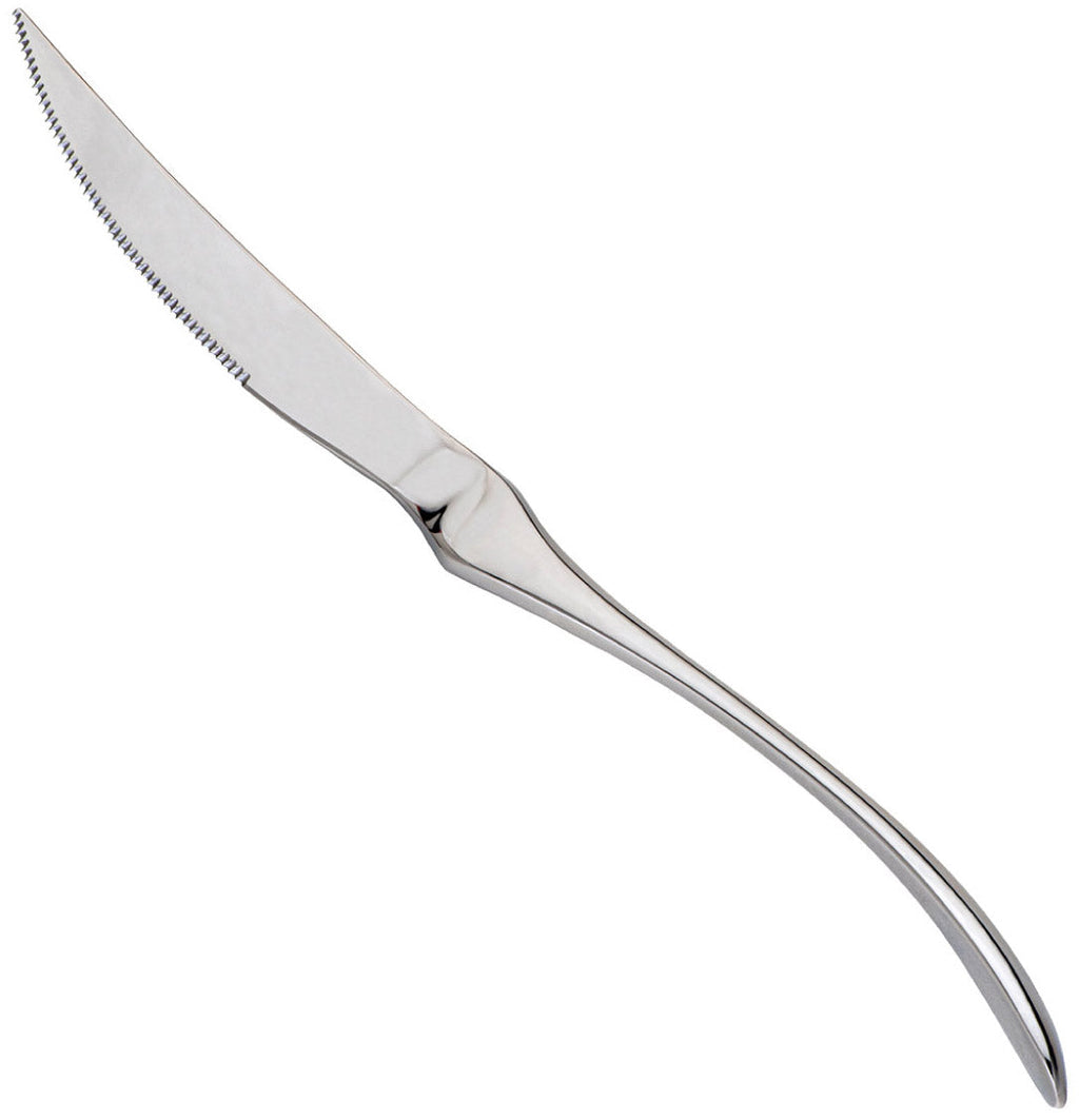 Trek è un coltello dalla silhouette curvilinea, completamente in Acciaio Inox, ideale per aggiungere un tocco di originalità alla tavola. L'impugnatura leggera e la lama seghettata assicurano un senso di comodità per il taglio della carne e secondi vari. Scegli Trek per una mise en place delicata ma allo stesso tempo accattivante!
