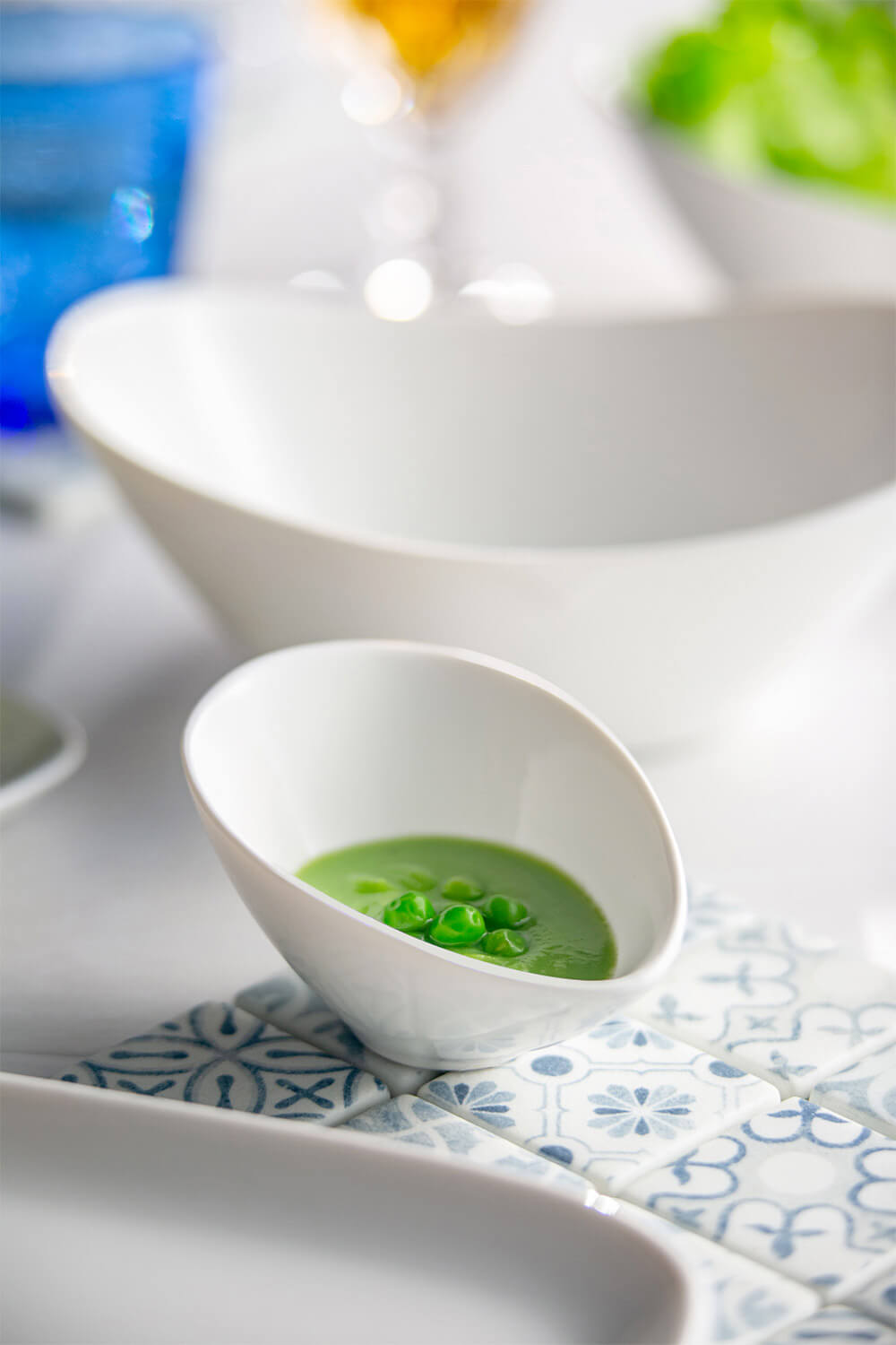 - Forme:coppette oblique dalla forma ovalizzata moderne e di un'eleganza minimal che rende la tavola raffinata e attuale. Particolarmente adatte a contenere finger o salsine sono studiate per abbinarsi perfettamente ai vassoi/piatti (in particolare i trapezi) della stessa collezione..
