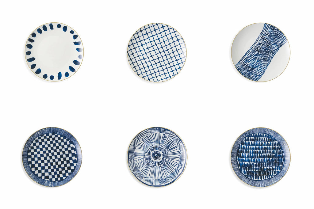 Set 6 Piatti Frutta in Porcellana Decoro Blu Ø19,5 cm Villa d'Este Home Tivoli Masai Blue