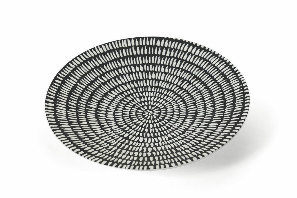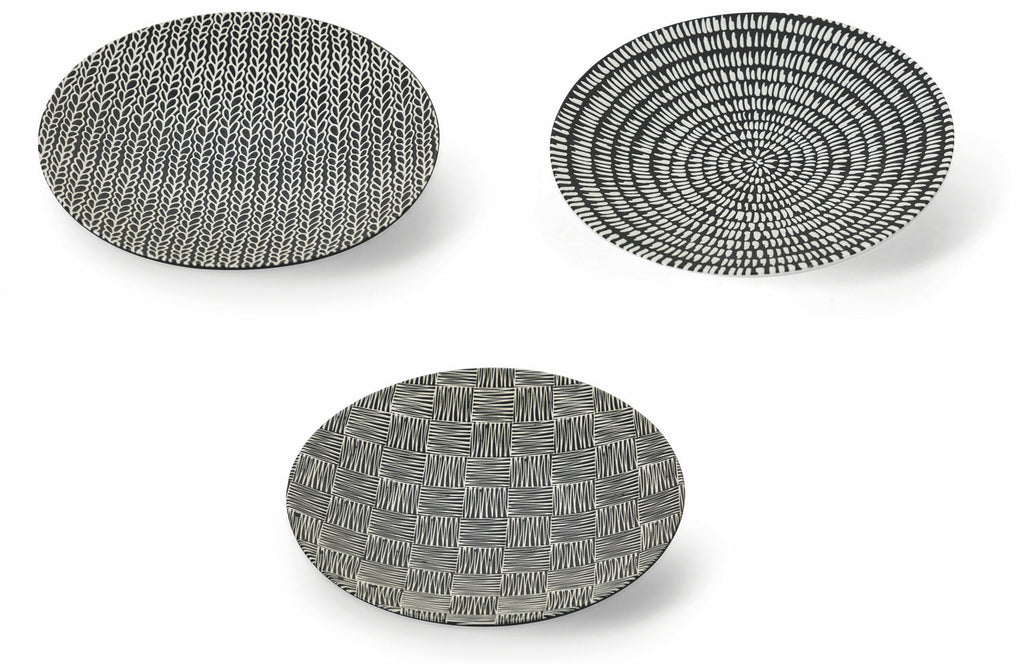 Set 6 Piatti Piani in Porcellana, Decoro Tribale A Rilievo Ø28,5 cm Villa d'Este Home Tivoli Timbuktu