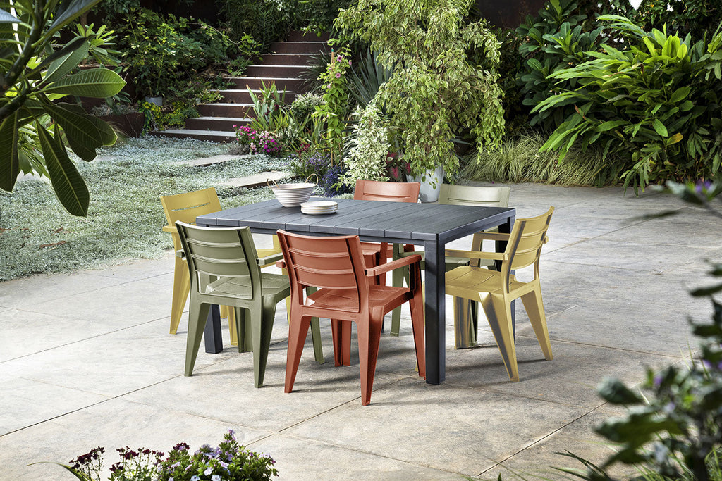 Set 6 Sedie da Giardino Keter Julie 61,5x58,5x79 cm Effetto Legno Verde Rosso e Giallo