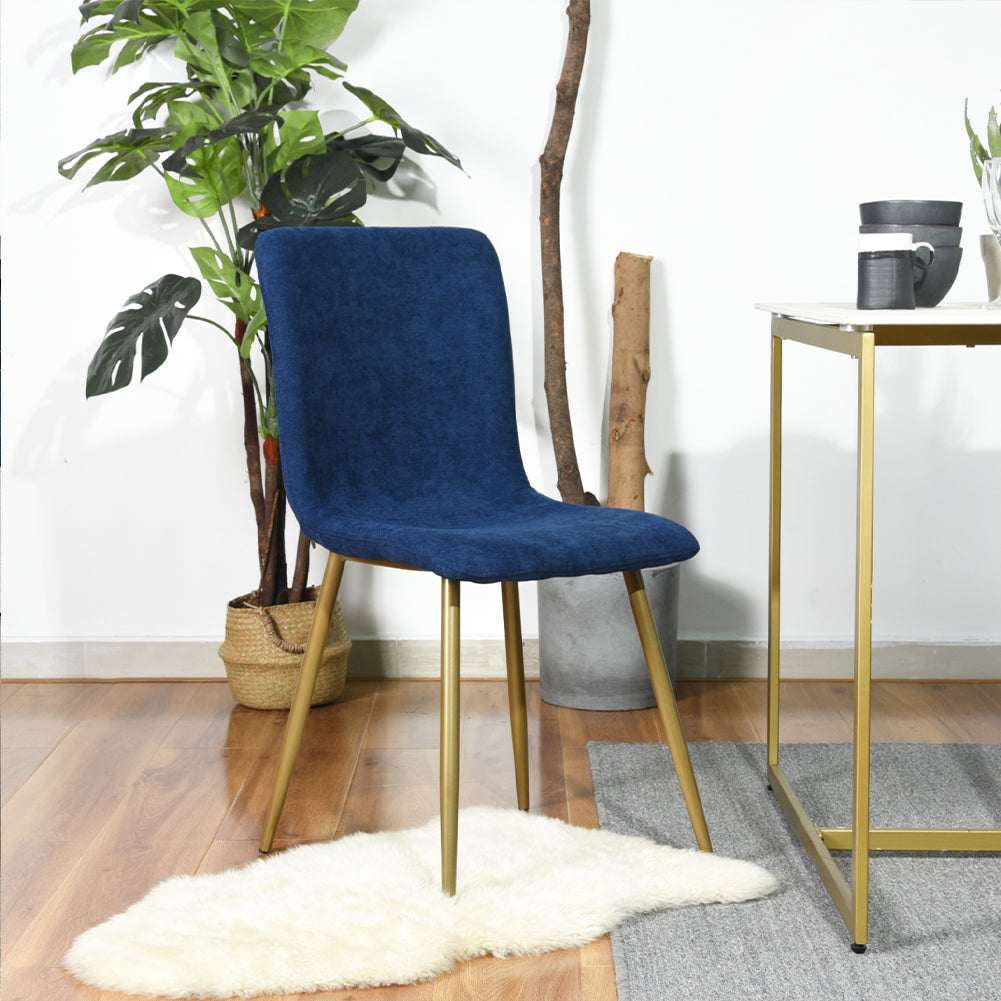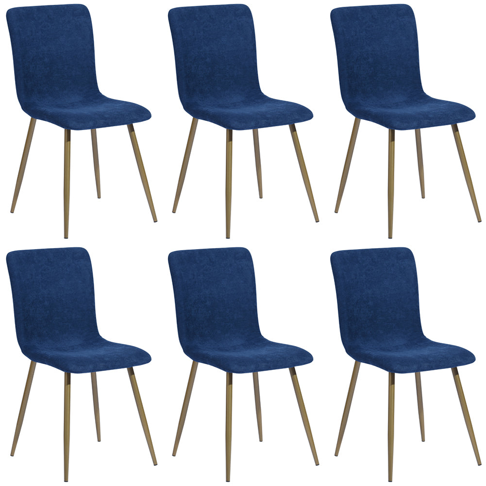 Set 6 Sedie per Sala da Pranzo Blu con Gambe in Acciaio Dorato Seduta Ergonomica