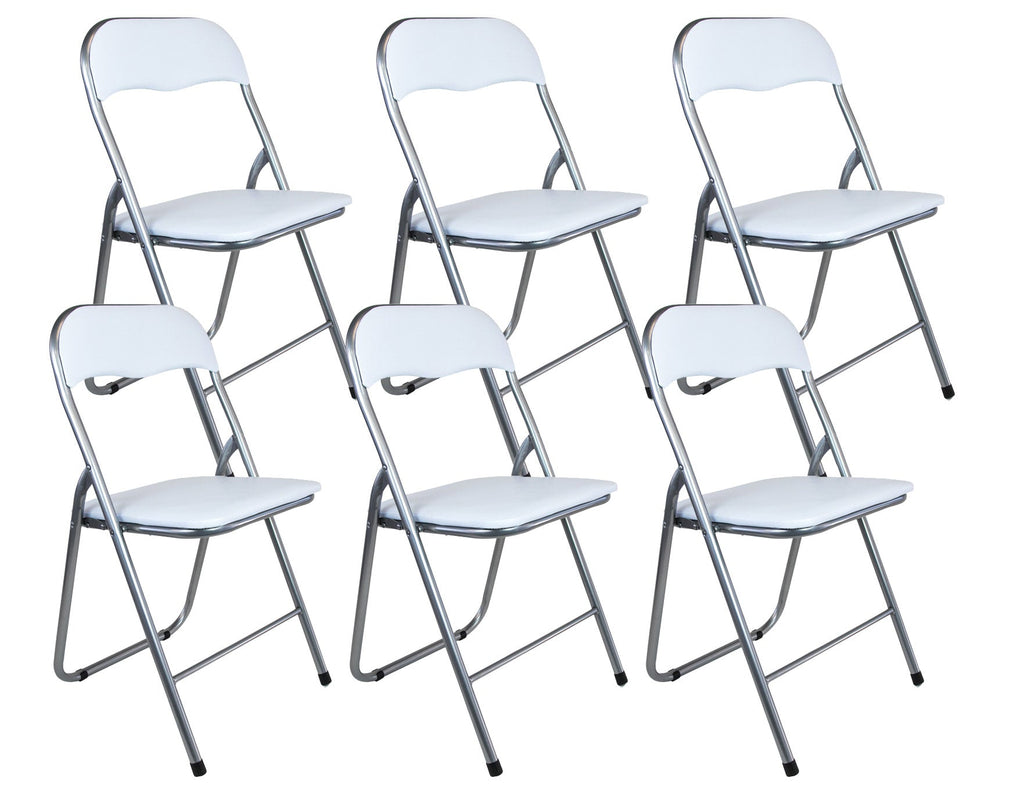 Set 6 Sedie Pieghevole 45x45x45/80 cm in Acciaio e PVC Imbottito Bianca
