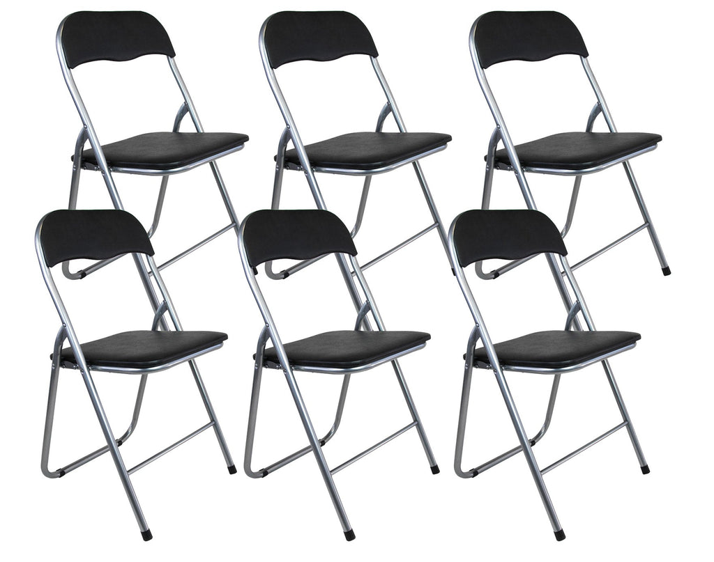 Set 6 Sedie Pieghevole 45x45x45/80 cm in Acciaio e PVC Imbottito Nera